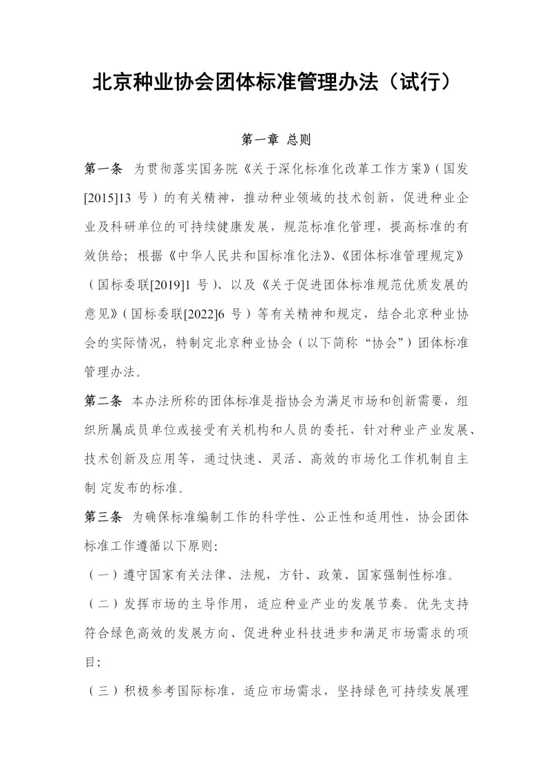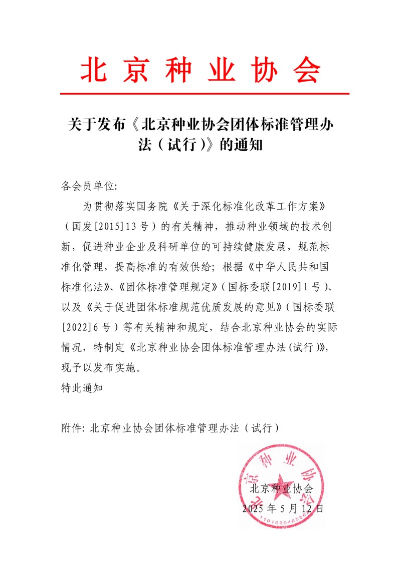 关于发布《北京种业协会团体标准管理办法(试行)》的通知