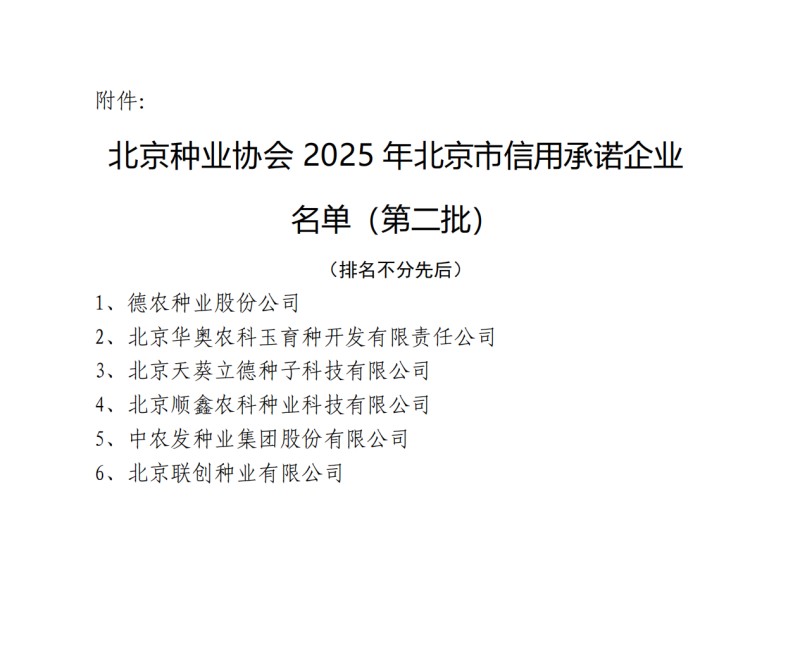 北京种业协会关于2025年北京市信用承诺企业名单(第二批)的公告