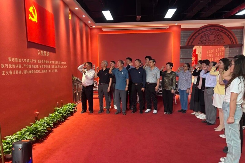 在“重温入党誓词”环节,在胡美强书记的领誓下,各位党员面对鲜红党旗、举起右拳,庄严宣誓,铿锵有力的誓言在现场回荡。