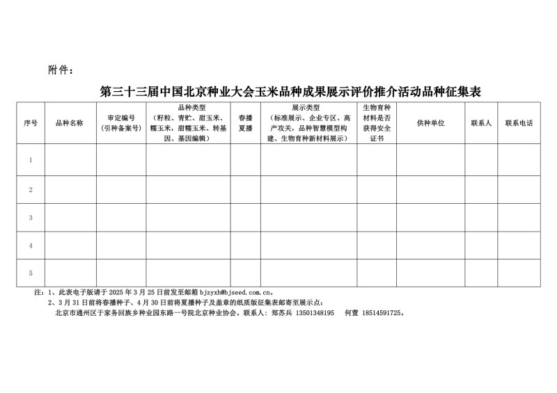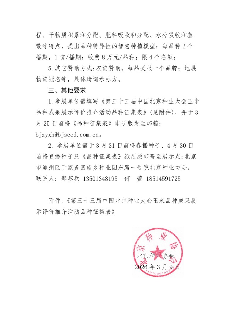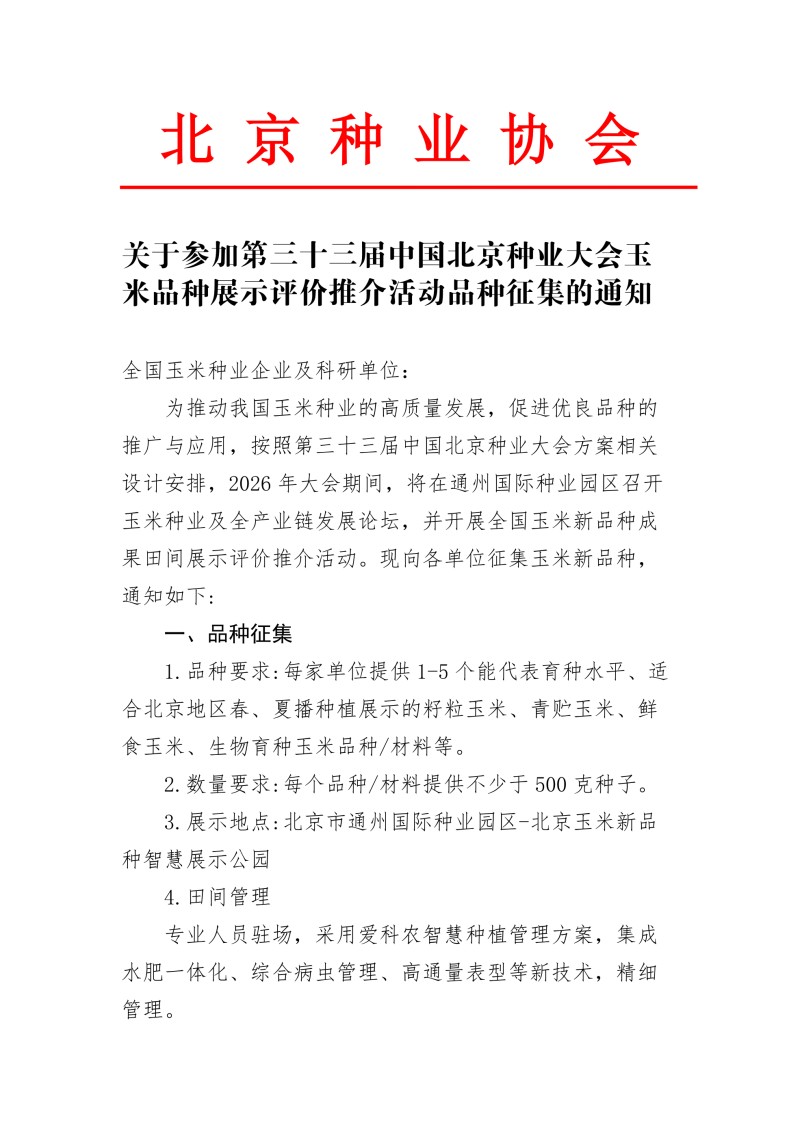 关于参加第三十三届中国北京种业大会玉米品种展示评价推介活动品种征集的通知
